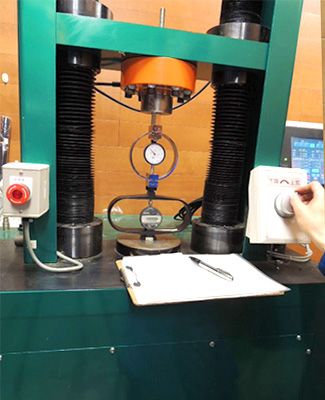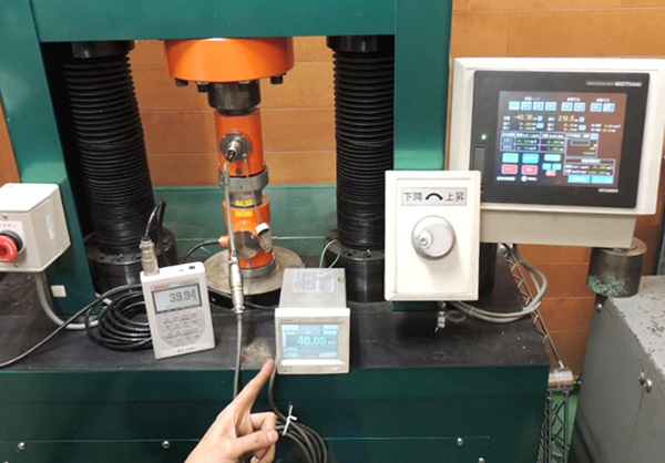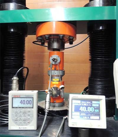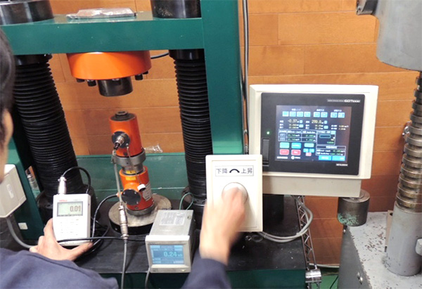 規定荷重は、圧縮荷重を加えていき基準器の値を該当荷重の値に合わせます。